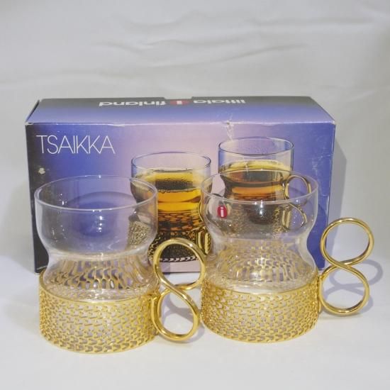 イッタラにて活躍した、ティモ・サルパネヴァのデザイン「ツァイッカ」。 人気の高いシリーズで、シルバーの持ち手のモノは近年まで製造が続けられていました。 昨年も、限定の販売で流通されたほど。 ゴールドのシリーズは、一定期間のみの販売でした。 当時は、ホットワインや紅茶、コーヒーなどを楽しむアイテムとして多くの人に親しまれていました。