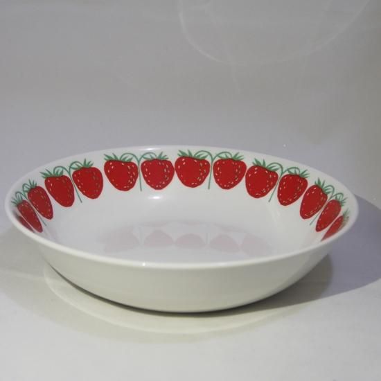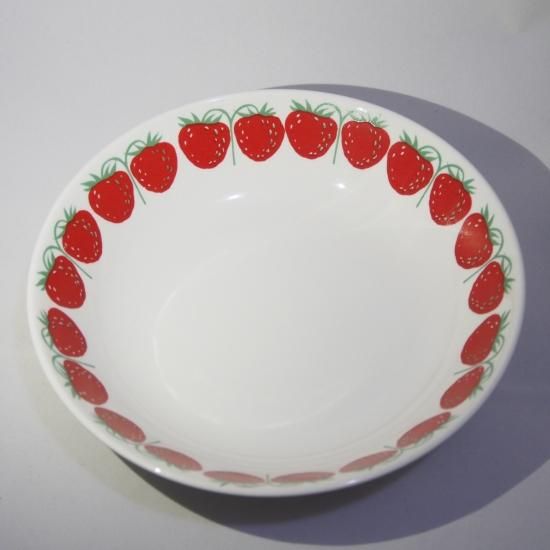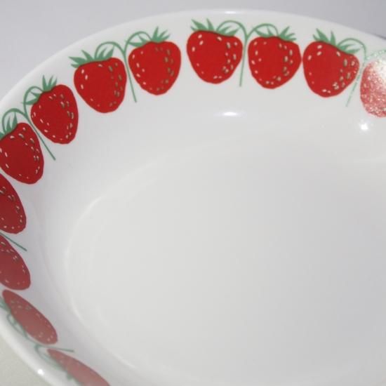 イチゴの模様が縁にプリントされた可愛らしいシリーズ。 アラビアを代表するデザイナー、ライヤ・ウォシッキネンのデザイン。
