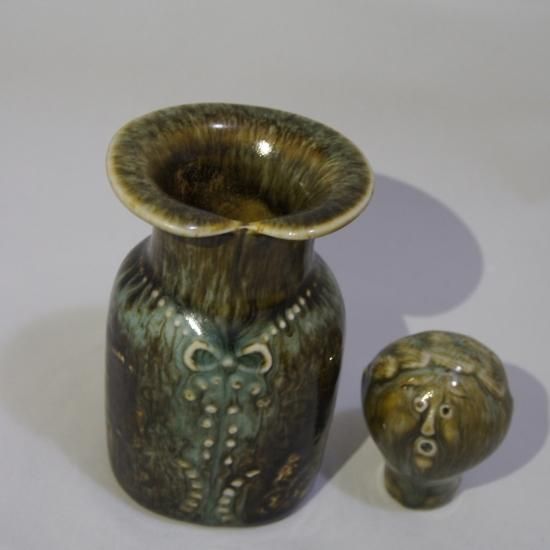 北欧を代表するデザイナー、スティグ・リンドベリによるデザインのボトル。 頭が蓋となっていて、取り外しが可能。