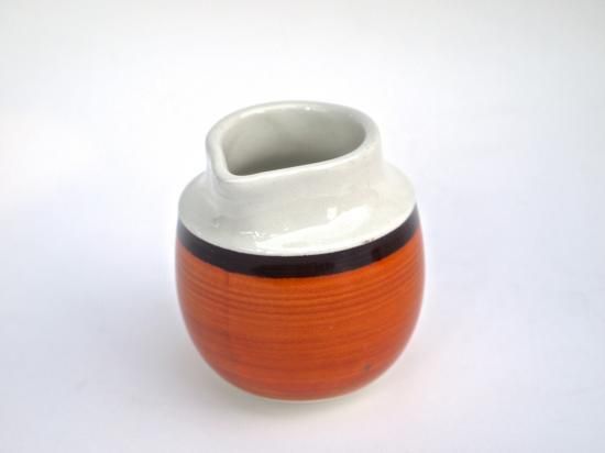 こちらははオレンジとブラウンの中間色のような温かみのあるカラーと、ぽってりとした丸みのあるフォルムが特徴の可愛らしいクリーマーです。 耐熱性に加え、食器洗浄器にも対応した機能性の高いシリーズでもあります。 手になじみやすいすっぽり収まるサイズで程よい重量感です。 こちらのシリーズはなかなか手に入りにくい商品でもあります。 カップ&ソーサーと揃えてお使い頂くのもオススメです!!! 種別 : アンティーク/used ブランド : グスタフスベリ/GUSTAVSBERG シリーズ:Arena/アレナ サイズ : Φ 6.8cm H 7.4cm 原産国 : スウェーデン/SWEDEN デザイン : スティグ・リンドベリ/Stig Lindberg 焼成年 : 1973-1978年 状態としては使用感もほとんどなく、艶やかでとても良い状態です。 *この商品は実際に使用されていたユーズド品です。長い年月を経てきた中で、細かいキズやシミ、色褪せ等がある場合がございます。状態に関して、より詳しくをお知りになりたい場合は、ご注文前にメールにてお問い合わせください。