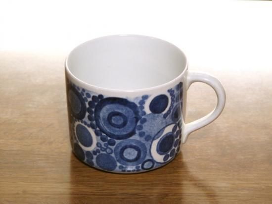 カップ表面に、濃淡のあるブルーで描かれた大、小、様々な丸模様が 特徴的なシリーズです。 珍しい模様ですが、見ているとついつい見入ってしまう、そんな不思議な魅力のあるアイテムです。 こちらの商品はカップのみの販売になりますので、その点を考慮したお値段となっています。 種別 : アンティーク/Used ブランド : ロールストランド/Rorstrand サイズ : φ 7.4cm H 5.8cm 原産国 : スウェーデン/SWEDEN デザイン : インガー・パーソン/Inger Persson 製造年 : 1960年代 状態としてはヒビや貫入も無く艶やかで良好なコンディションです。