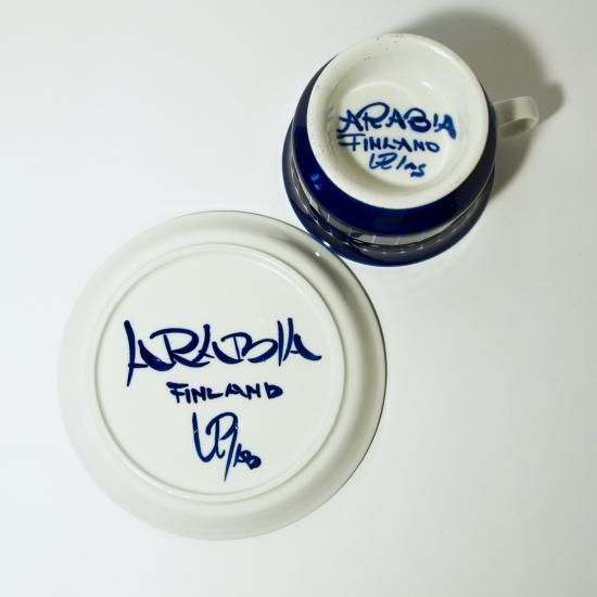 大変人気の高いこのシリーズは、ARABIA社を代表するデザインの一つです。長期にわたって製造されていたにもかかわらず市場の流通量はそこまで多くなく、また現地での価格も高いシリーズです。その一つの理由として、現地の方たちがこのシリーズが好きで、今でも使っている方が多く、市場に出ても現地の方たちで流通が回っているためにあまり市場には出てこないんだとか。