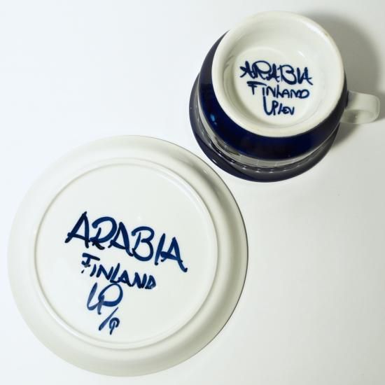 メーカー ARABIA/アラビア シリーズ :Faenza/ファエンツァ サイズ : カップΦ 9.5cm カップH 6.0cm ソーサーΦ 15cm デザイナー :Ulla Procope 原産国 : FINLAND/フィンランド 年代 :1960〜2002年 状態としましては、ヒビや欠け、貫入など見られず、使用感もほとんど感じられません。取っ手の部分にペイントのにじみが少し見られます。それ以外は全体的に艶やかで非常に良好なコンデションです。