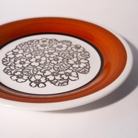 Gefle社を代表するデザインの一つとしてとても人気の高いシリーズがこちらのアグネッタのシリーズです。花柄を中央に配したデザインながら、縁取りをブラウンにしたことで可愛いながらも、大人っぽさも感じさせてくれます。