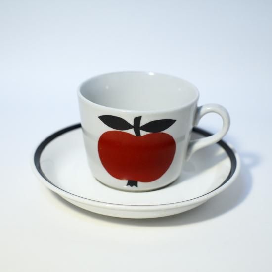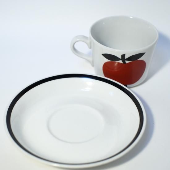 ARABIA社の非常に珍しいOmenaのカップ&ソーサーが入荷しました!!フィンランド語で「りんご」という意味のこのシリーズ。カップの両面に大きなりんごが描かれたシンプルなデザイン!手書きならではの味わいを感じることのできる独特なフォルム。カップボードに飾って眺めていたくなるような一品です。流通量はとても少なく、ほぼ見かけることのないシリーズです。コレクションアイテムとしてもオススメです!